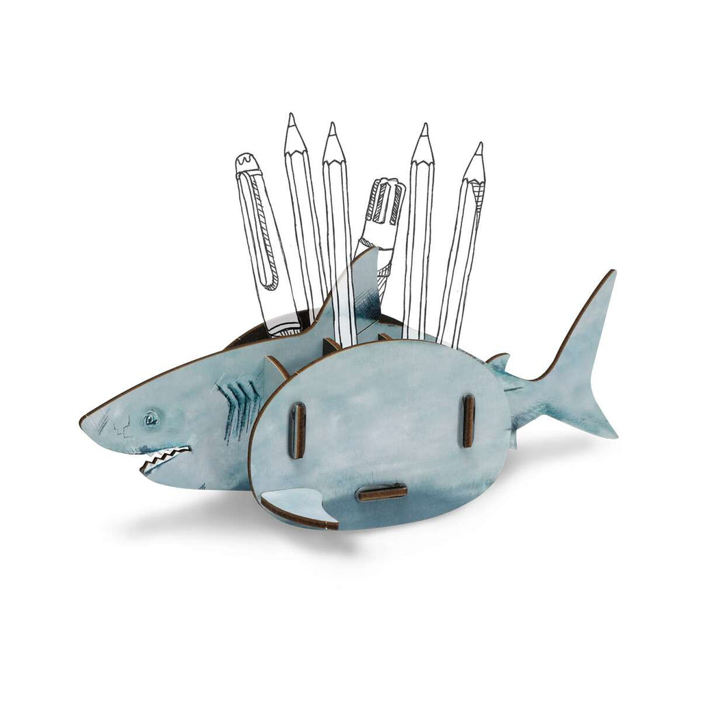 The great white shark, for example, is considered the largest predatory fish on Earth and, not least due to its portrayal in film and television, is perceived as a particularly dangerous marine animal. In contrast, our shark-shaped pencil box for your desk is completely harmless and even helps keep things tidy.
