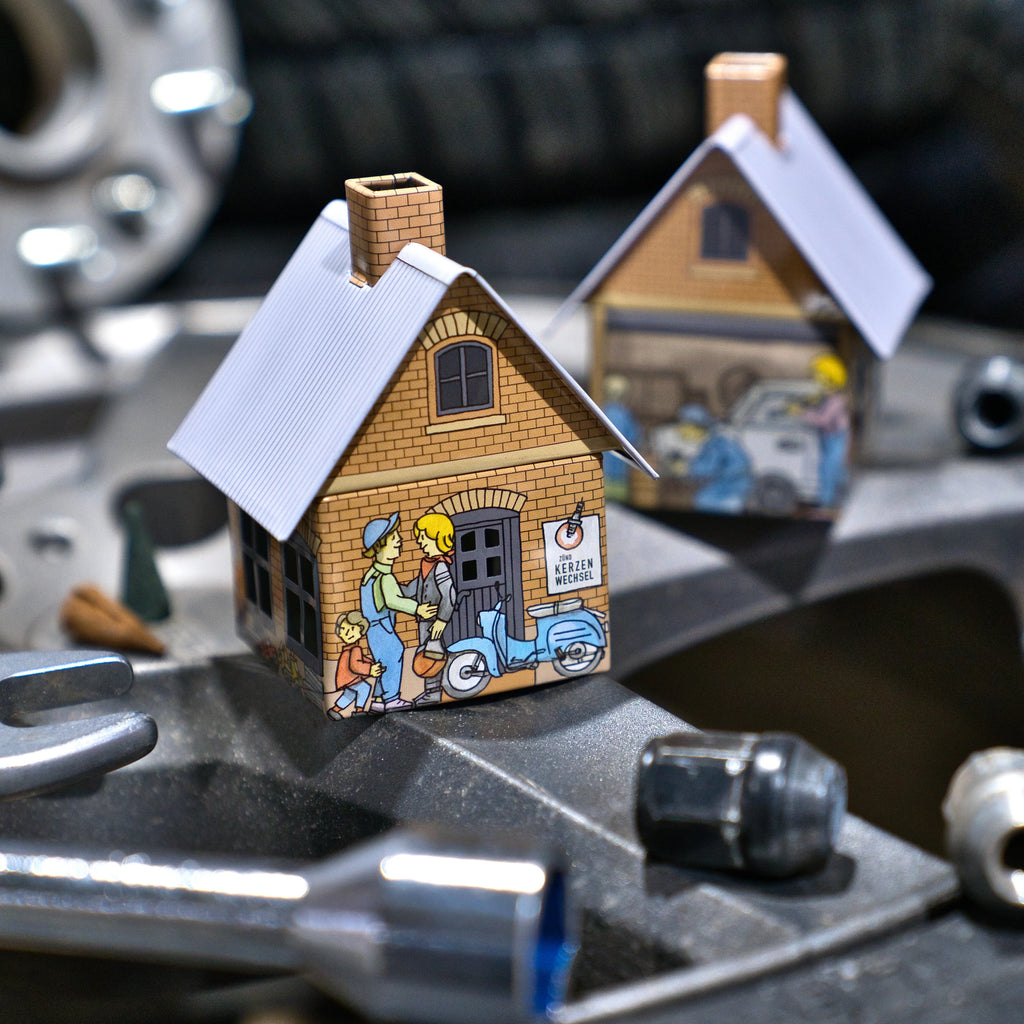 This incense burner is designed to burn incense cones. Shaped like a hut and made from tin plate - this quirky little burner is designed to look like a mechanic’s workshop and makes a great, unique gift!