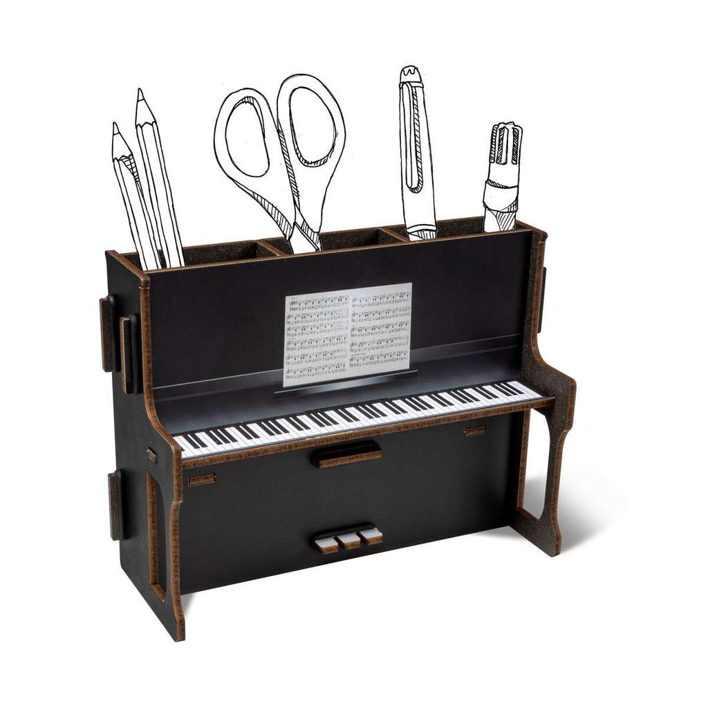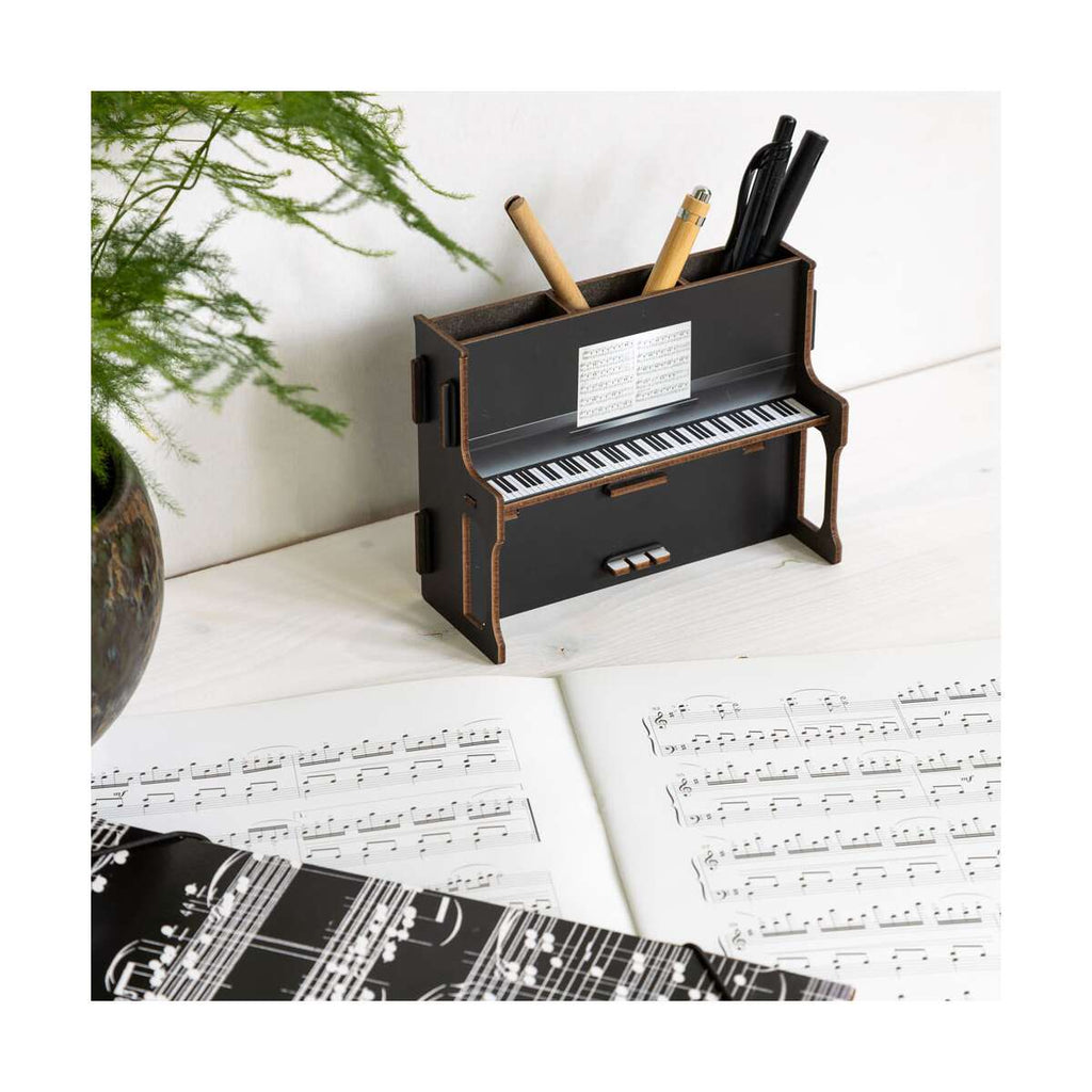 This meticulously detailed, piano-shaped pencil box is more than just practical storage; it's a small work of art for all music lovers. With three compartments, it offers ample space for pens, notepads, or small accessories and is perfect for a desk, music stand, or music room. Modeled after a miniature piano, the box delights with authentic details: pedals, a stylized key front, and even a small sheet of music on the shelf will make any pianist's heart beat faster.